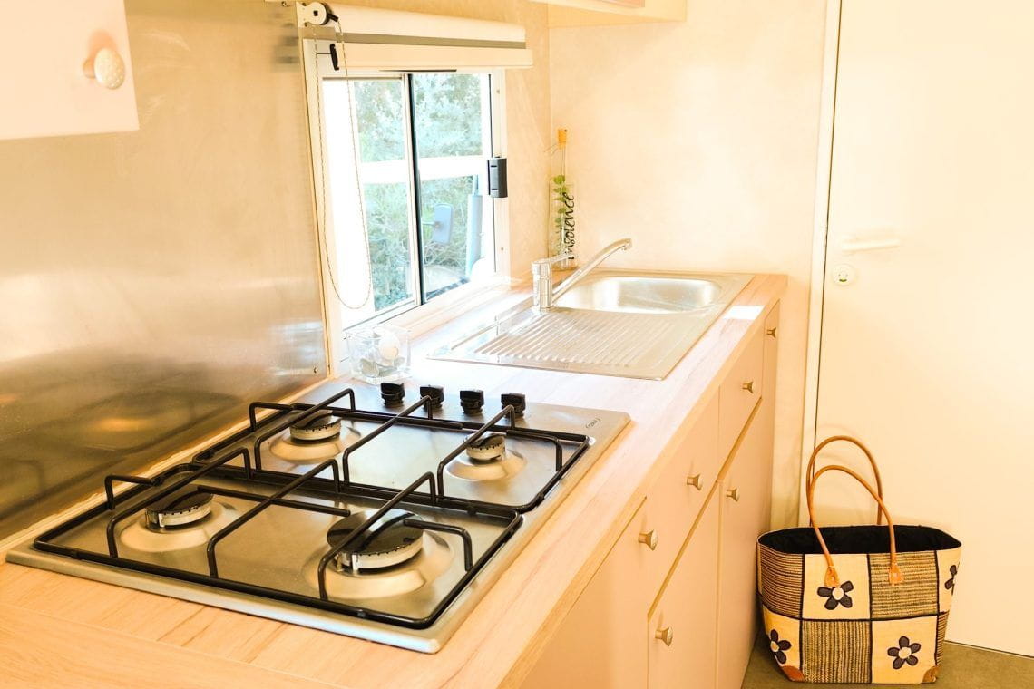 Dans votre mobil home « Six-Fours » vous y trouverez: 4 chaises. 3 matelas. 4 oreillers. 4 couvertures ou couettes. 4 bols. 4 grandes tasses. 4 assiettes à dessert. 4 assiettes creuses. 1 réfrigérateur-congélateur. 2 lits simples de 80 x 190 cm. 1 lit double en latte de 140 x 190cm . Climatisation. 1 réchaud à gaz. 1 évier. 1 séchoir à linge. Divers placards. Diverses armoires. 1 table. Douche, 1 lavabo, 1wc. 1 cocotte. 1 poêle à frire. 2 casseroles. 1 passoire. 1 cafetière Senseo. 1 ciseaux. 1 louche. 1 écumoire. 1 spatule a poêle. 1 couvert a salade. 5 verres à jus de fruits, 5 verres à vin. 10 assiettes. 3 boites plastiques. 2 grands plats. 2 saladiers. 1 essoreuse à salade. 1 planche à découper. 10 couteaux. 1 couteau à viande. 10 cuillères à soupe. 10 cuillères à dessert. 10 fourchettes. 1 ouvre-boite. 1 ouvre-bouteille. 1 micro-onde. 1 économe. 2 bacs à glaçons. 2 transats ou chiliennes. 1 carafe. 1 télévision. 1 Barbecue électrique ou plancha. 1 grille-pain.